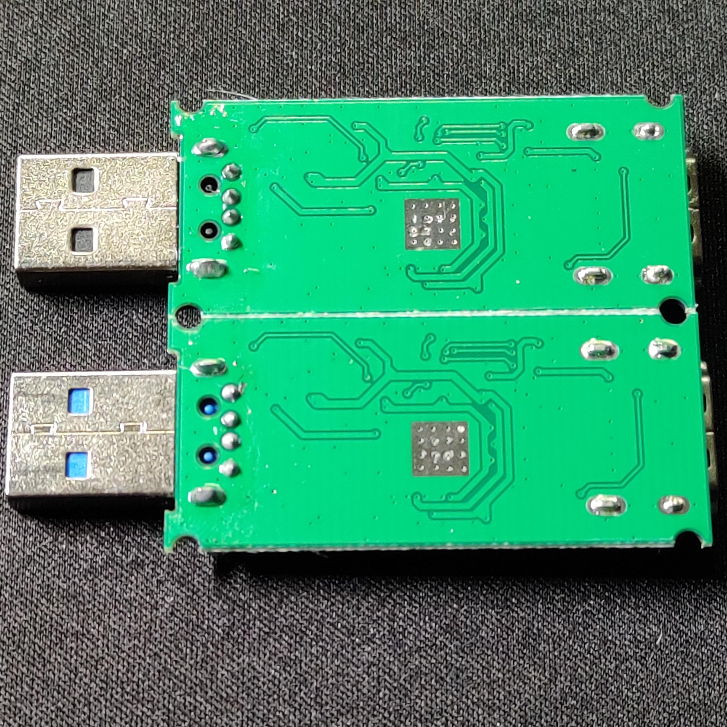 둘 다 USB 2.0 모델이지만, 아래쪽은 처음에 구매한 약간 비싼 (개당 $7.5) 버전이다. 위쪽은 후에 구입한 저렴한 (개당 $5.5) 버전이다. 사용해 본 결과 성능에 차이는 없으나, 메인 칩셋의 히트싱크 유무 정도가 차이점이다.