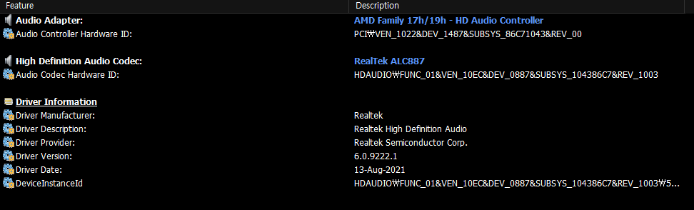 - 현재 사용 중인 메인보드의 오디오 칩셋이 Realtek 사의 제품인지 확인합니다. 메인보드 모델을 검색하여 찾아보거나, HWiNFO의 '오디오' 파트에서 '코덱'을 확인하면 됩니다.